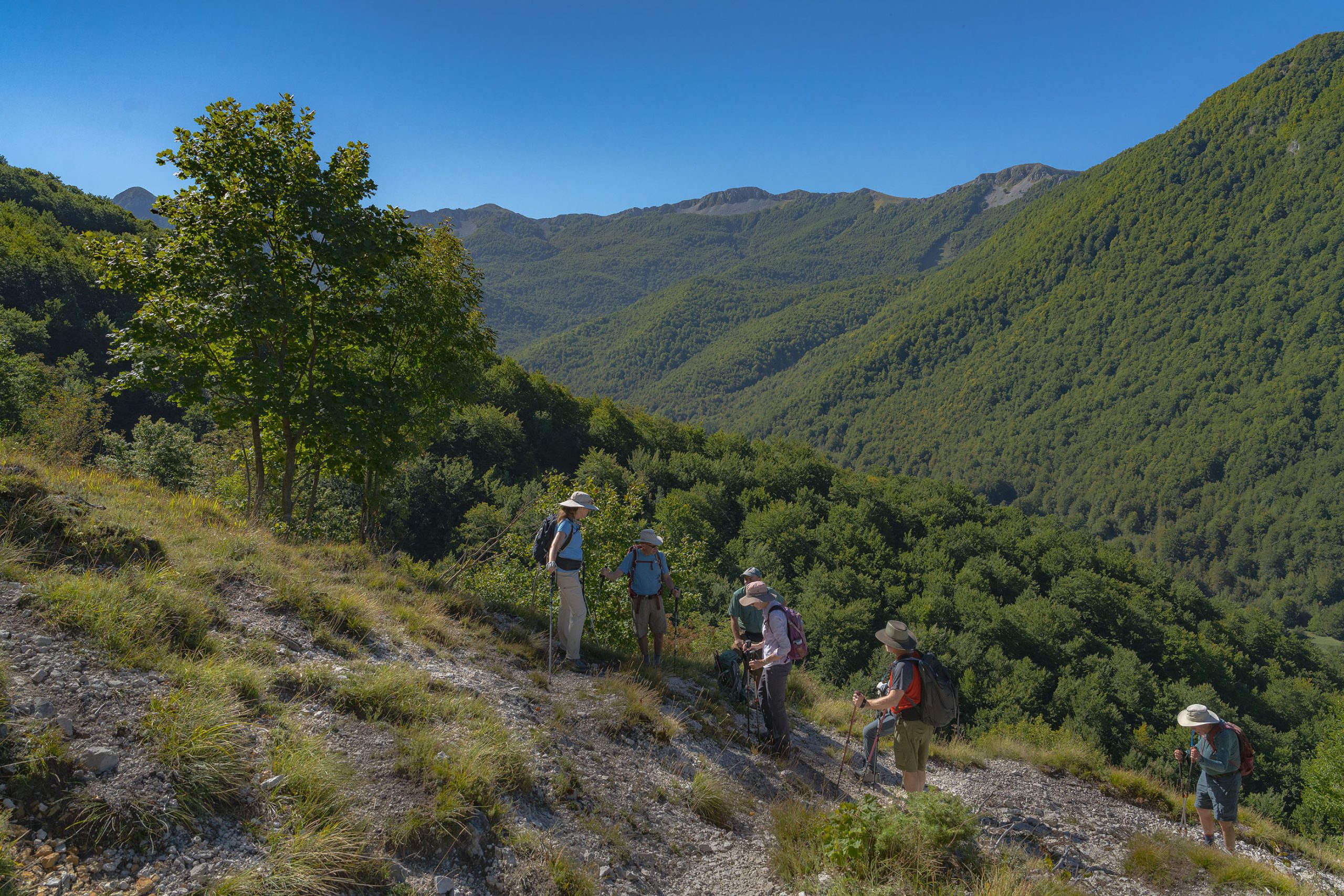 Dopo il pranzo al sacco si riscende. La via del ritorno è la stessa, con una piccola deviazione che, una volta raggiunto il fondovalle, porta alla sorgente Tornareccia per godere ancora qualche ultimo istante in natura, immersi nel bosco e accompagnati dal canto dell’acqua.
