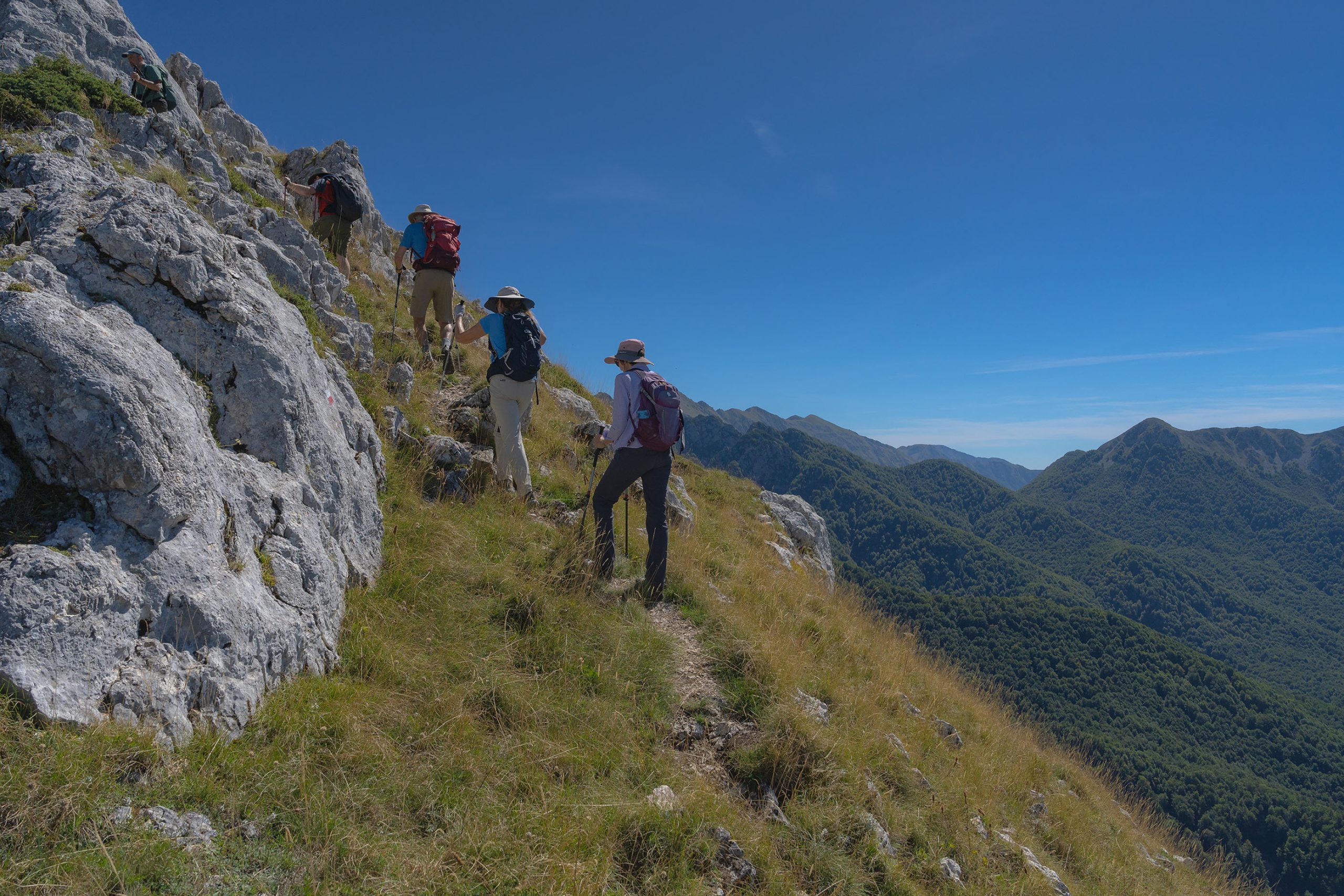 Un’escursione impegnativa verso la vetta di Monte Amaro con panorami a 360° su montagne, boschi e valli del Parco.
